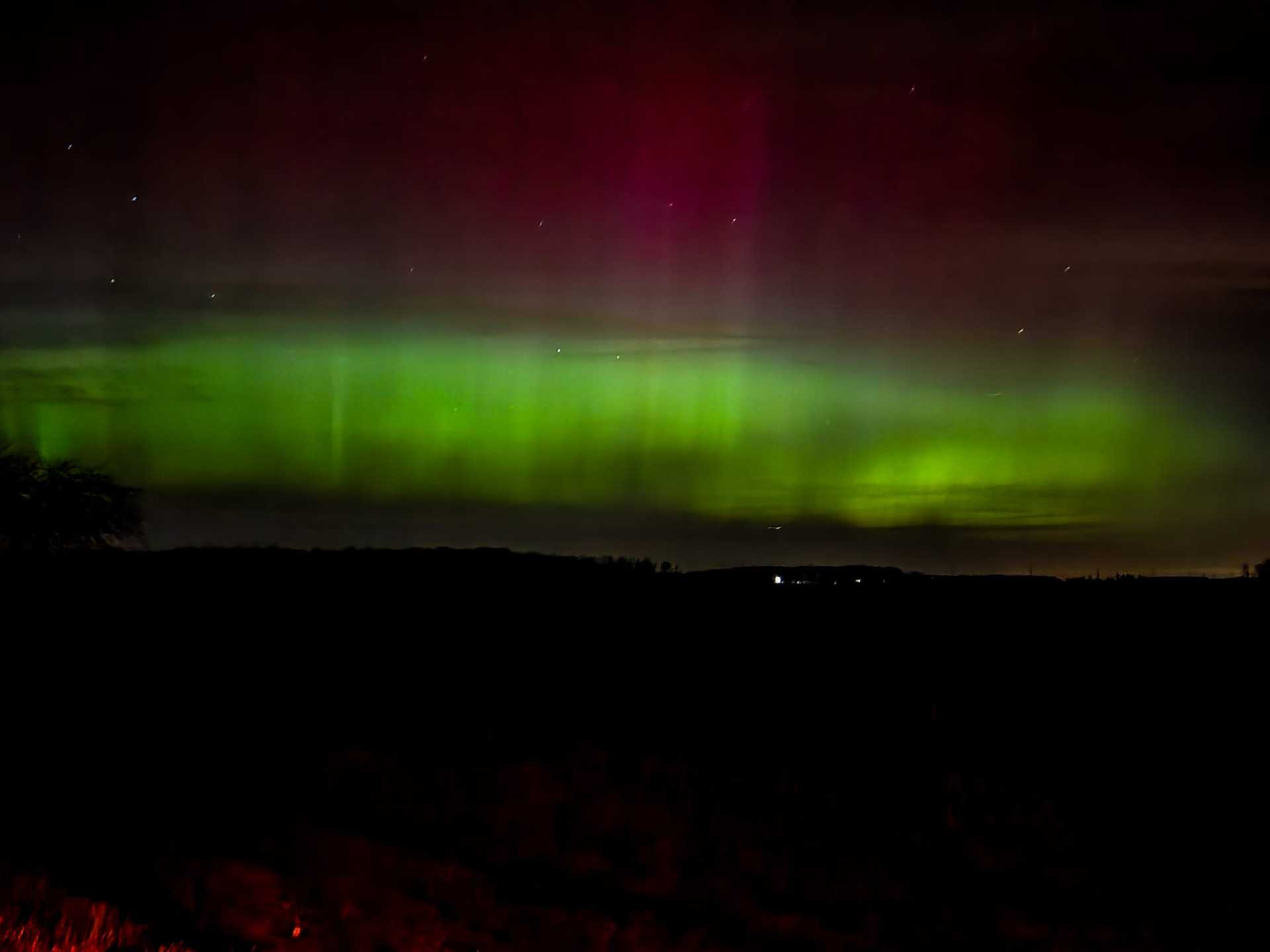 I live in the Chicago area so I have only seen the Northern Lights once and it was not nearly as spectacular as that. For me, the NL appeared as a number of wavy bands in blue & white high in the sky above our house but I would have just about killed to have a display like the one you experienced.