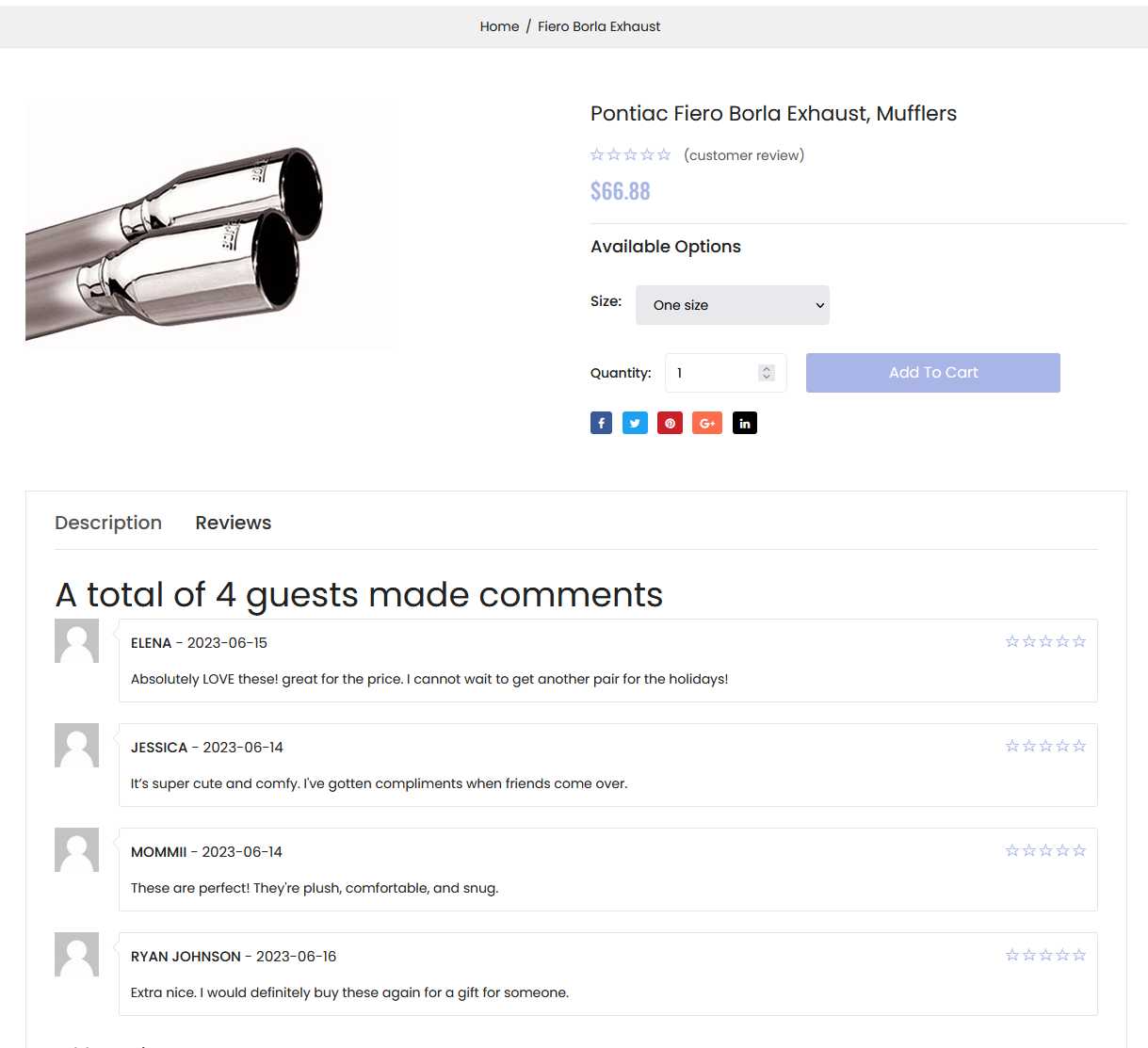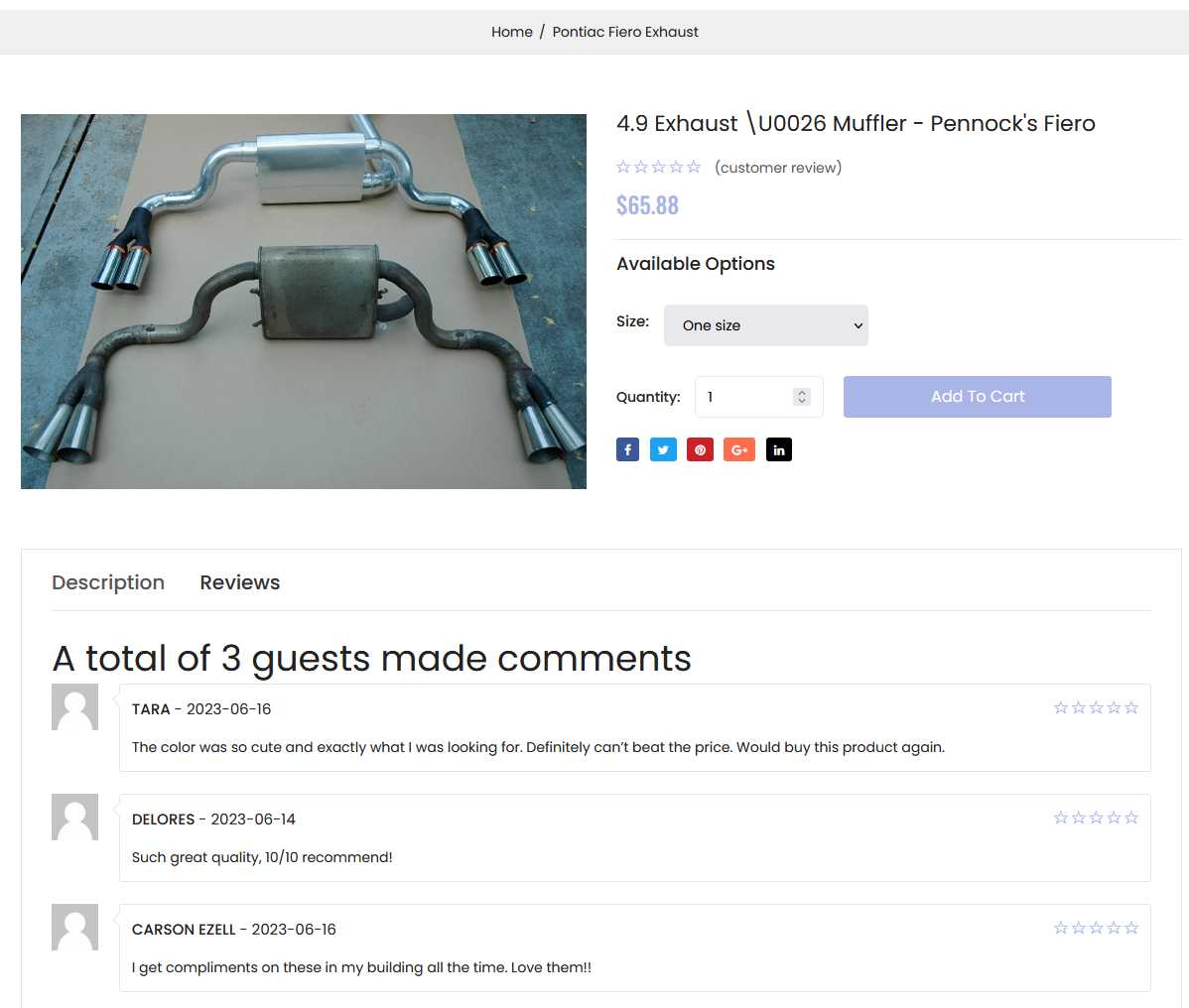 Reading the reviews on each product page is hilarious. The exhausts had reviews like "OMG! I thought quality would be less than acceptable, but these taste amazing!". Or "These are sooooo fashionable! I look great in them!"