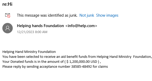Rich I tell ya..rich!! Pretty sure all I gotta do is send 'em my bank info and I'll soon be rollin in USD!! (How could my email have possibly identified this momentous news as mere 'junk' ? )