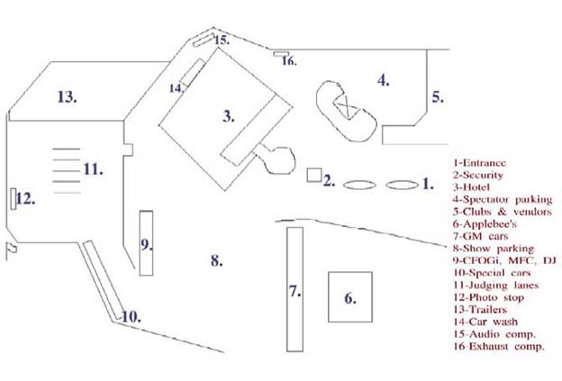 I borrowed this image from the CFOGi web site http://www.cfogi.org/location.htm I thought it was clear that you would have to drive your car thru the Judging lanes. See #11 Archie