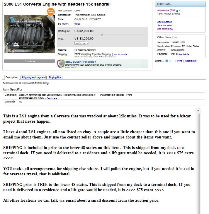 WTF Loyde... If you have 4 LS1s and they are all on Ebay, what were you planning to put in mine?