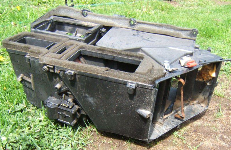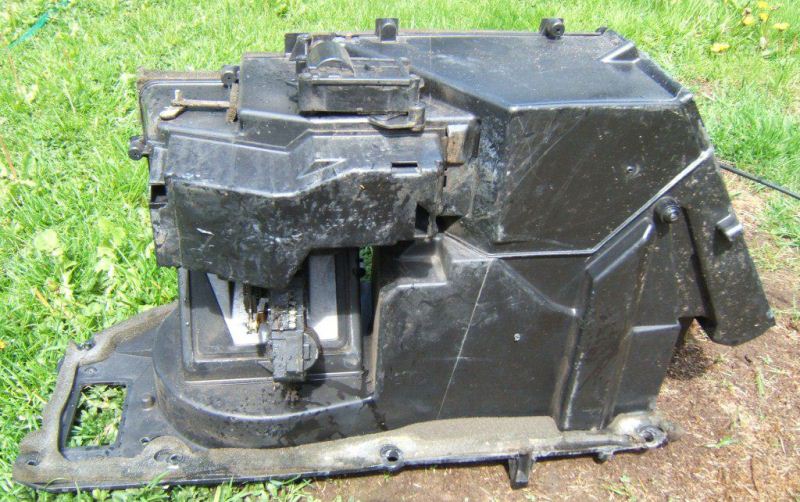 And just for clarity, here is what the heater core cover looks like outside the car. The four tabs sticking out on each side of the cover are where each of the screws go in
