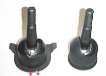 Below is a pic of the Caddy ball joints. The one on the left has the portion of metal that needs to be taken off. I took a hack saw and did two small cuts where the red dots are. I didn’t cut all the way through. Then took a pair of pliers and wiggled it a little and then slid the portion of metal off.