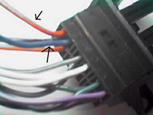 Perhaps this pict will help you. The black harness you see to he right is the side that will plug into your factory harness on your car. If this harness is labeled with letters, on the plastic above to wires going into it, you should cut the wire into letter "E" about 2-3 inchs above the harness, then make a splice into letter "F" and tape the connections. In the following pict. your would cut the blue wire (bottem arrow) and hook it into the red wire (top arrow), once you do this be sure to tape off the other end of the blue or "E" wire so it wont short. Email me at sean@kdsi.net if you have anymore problems or dont understand somthing. Sorry about the size and quality of this pict. I am on a crappy computer.