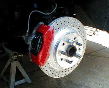 3. The kit does not place the brake pads fully on the rotors. There is over 1/4 inch of overhang where the pads will never wear. If you look at ltlfrari's web site, you can see the same thing. The various owners insisted to me that this was perfectly normal and safe. Wilwood disagrees.