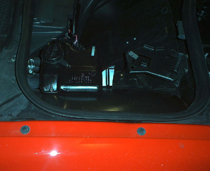 I used engine enamal in low gloss black. I think that it was plasti kote brand. I have used it before and it has held up well. I also painted the black on the lights and the engine grates with the stuff. It is a very close match to the black that the inside of the hood is painted with. When I showed my friend he couldn't figure out what I did. In fact, he didn't even realize the bottles were there. Just as a note the white lines that you see on them are view windows so that I can tell how much fluid is in the bottles. The other thing that I learned is to let the paint dry overnight. I put the bottles back in the same day and dinged up the coolant bottle pretty bad since the paint was still soft.