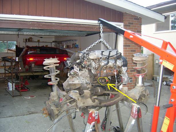 The knock sensor is pretty identiable, it should eb a brash colored cylinder, about 1/2" tall, with a hex head and an electrical plug on top of it. It screws in and out. The electrical plug is not standard and be careful not to break it. It is shaped like an oval. To remove it, push the two wide ends of the oval together, forcing it to look like a circle. Then gently rock it back and forth and pull it. To install it, just push it on.
