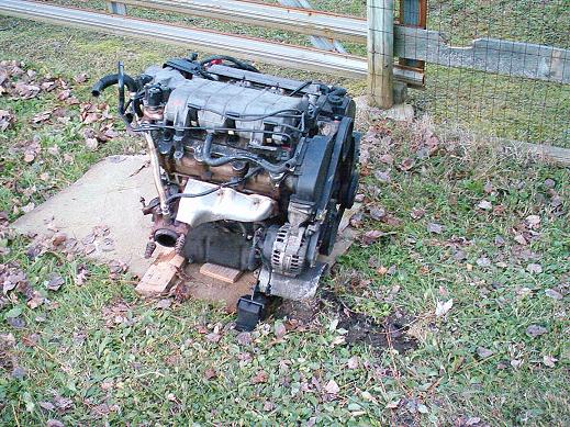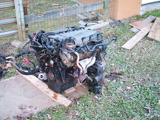 OK, went to the junkyard today and pulled this 3.4 DOHC. It took us about 3 hours. Not to bad with the minimal amount of tools we had. It is from a 1995 Lumina. Now, what do people do with the power steering pump and AC compressor? Theyre just taking up power that I could be using!