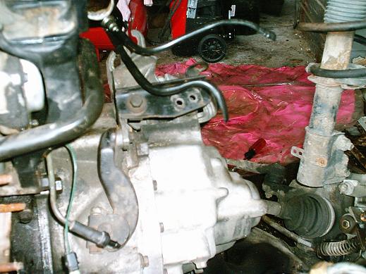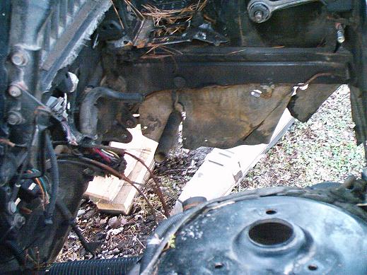 Second the comment about the way it is jacked up. At least put the wheels under there so that if it does go it won't turn you to mush (keeps the wheels oout of the way too. Don't envy you working in the yard like that though. Best of luck withthe swap.