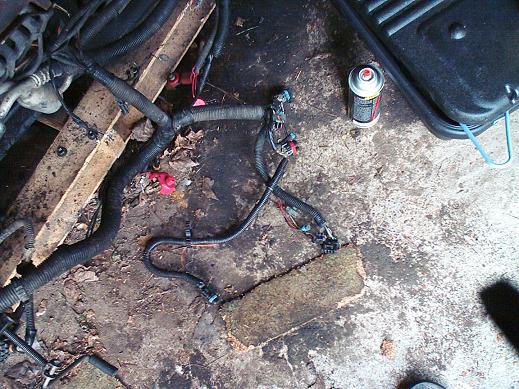 I had to cut the original slave cylinder braket so it wouldnt hit the engine. Does anybody know what these plug into? Wainting for engine mount. Going to loop the PS pump. Still going through the wiring to figure what I need and dont. Im trying to use the Luminas air intake and sensors. And final pic for today...Will keep you updated.