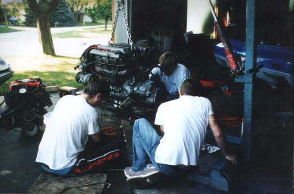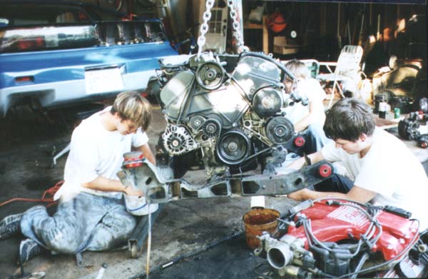 Got my engines for $300 a pop. Its pretty straight foward, search my name in the archive TD&Q you'll find most of the DOHC threads, and I have a biuld thread in there. Im running the stock fiero intake system, with a K&N. Ive monitored the MAP values with and without the intake installed, and found them pretty much the same. You cannot use the 3.4 intake, doesnt work without mods. You'll need a chip for the ECM (Darth) most all 3.4s are autos, at least every one Ive seen. I think he means just replacing the stock waterpump for maintance. At least im assuming, theres no need to do anything special with it. Also about $20 for hoses for the cooling system. Ive got part numbers for those. The stock tranny should be fine. You can use stock mounts, but if you get a good half inch drill bit and some dodge truck mounts you can lower it pretty god, and make the front plugs much easier to change.