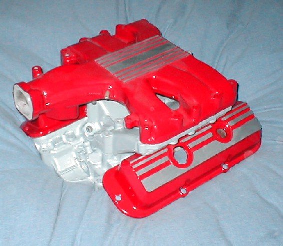 For $100 and $25 shipping I will send you one that looks like this: Powder coated in ruby red (it is a little darker than factory) and the middle intake in alluminum powder. They look good! There is a lower intake in the pic, you won't get that, I am out of them.