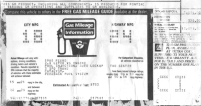 From the window sticker for my 88 Formula automatic