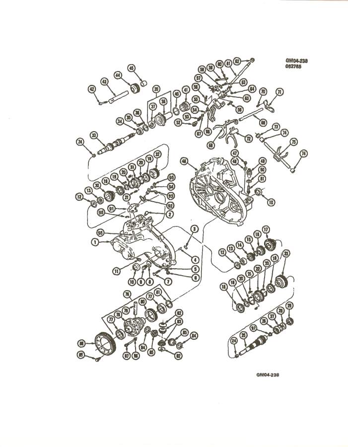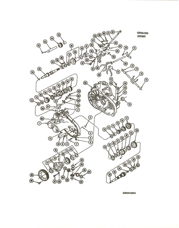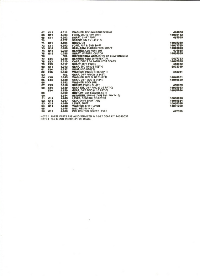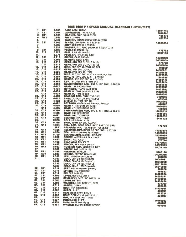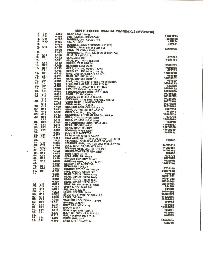 Attached below are some exploded parts list of the 4 spd muncie. The first two pictures are from the 84 factory service manual, the last three are from the 84 - 88 Fiero Parts Book.