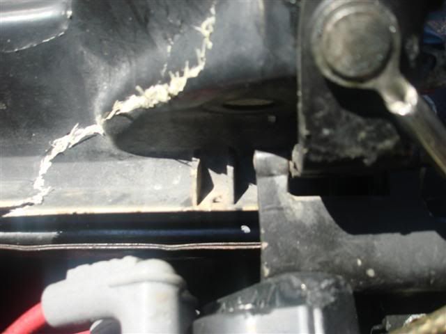 Shifted a little too hard I guess, transmission mount twisted and snapped a piece off the tranny off, engine torque and hit the deck lid cracking it, and somehow ripped half my belt off which sliced a rubber coolent line....
