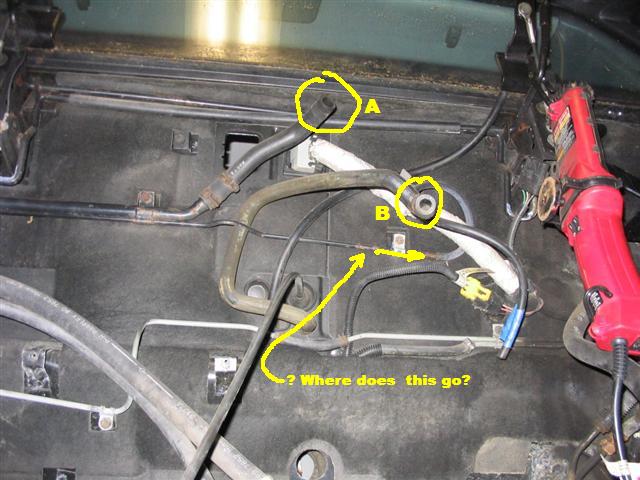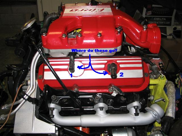 1&b ------ 2 you're supposed to have a metal tube there that goes to the Throttle body on side of the big rubber hose that goes to the air filter A has to be plugged was part of the recall was were the 2 is now