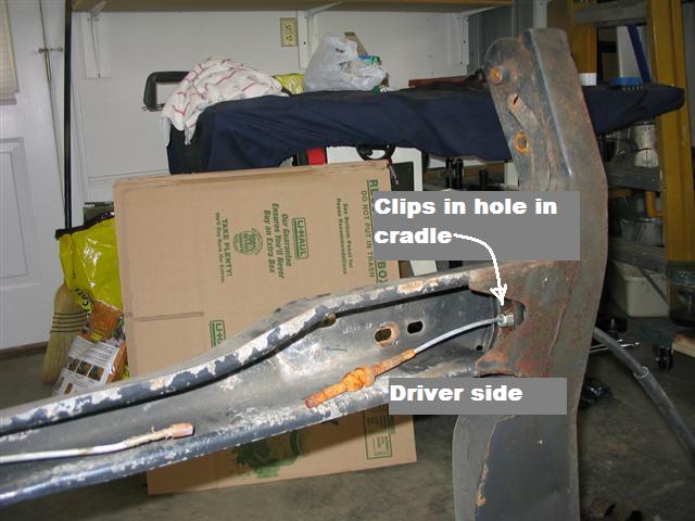 This is how the driver side cable leads from the caliper in to the cradle frame