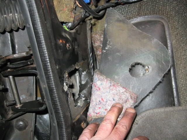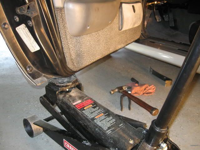 After this bolt is removed, jack the door up a little more and the entire hinge slides out toward you. Remove the worn bushings with a small drift, install the new bushings. you can now put it all back together in reverse order.