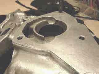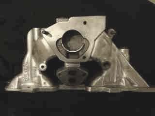 Here's something I dont hear much about. Besides gasket matching the ports I smoothed the transition from the TBI to the runners by carving a concave path. This way the 2" port eases to the 90 degree change of direction. I think this will allow more air than if the charge were to have to go another 1/4" and make an abrupt change.
