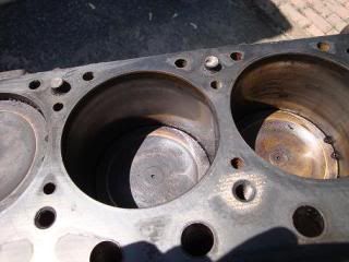 Here's something that seems odd to a 1st timer. The pistion bores look like there has not been extensive wear....and it has 175,000 miles on it.... It's knocking me out! Doesnt look like a bore job is in order but I gotta check the #s later for sure. Oh, notice the 2 bolts that broke off... These will be a pain...ug