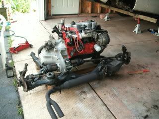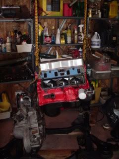Man!!! I would have to admit one thing.. An overhaul will take at least twise as long as you think. ug. Anyway I was able to insert the engine into the car (ug), connect up, paint (manifold paint), and install the entire exhaust, drain and fill the transmission, install the starter and trans splash guard, cut a few bolts down as I will omit the air conditioner and use the same bolts and begin the electic reconnect.