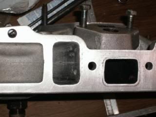 I wanted to show pics of the gasket port matching... This is the intake done with the rotary file on a high speed drill. Took off 1/8" on 3 sides and smoothed passage.