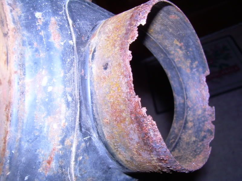Anyway, here is what the old air canister looked like. Lots of rust and a rather large hole on the bottom of the lip that I never noticed. I wonder if thats been the cause of my intermittent code 44? Hmmm...