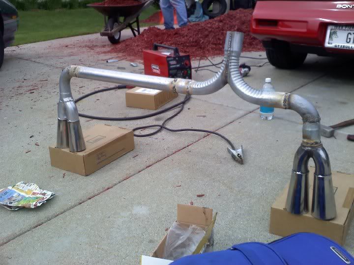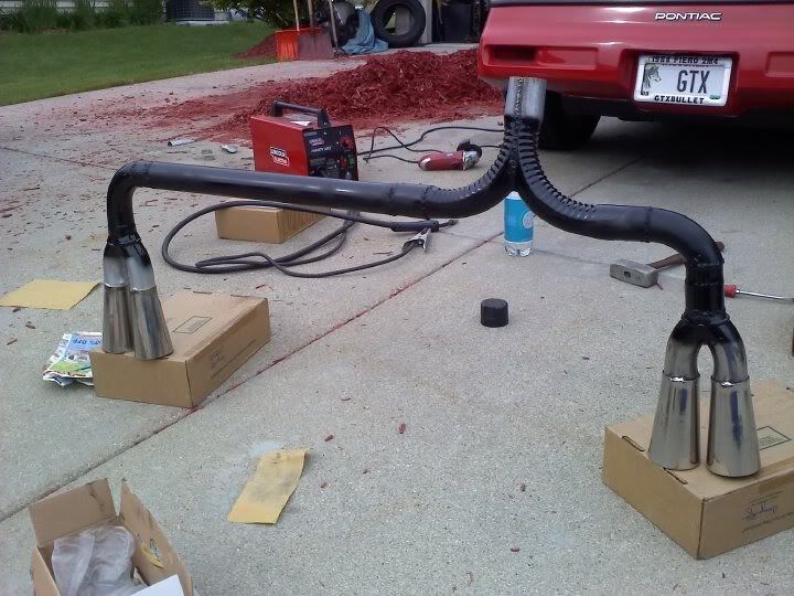 antuzzi I'm glad you asked this. I made a straight pipe freeflow muffler delete for my 88 Coupe. here are some pictures not including the brand new GM tips I scored last year for cheap I spent under $20 to make it. I bought 2 90 degree 2" pipes, one 2" straight pipe from Orielly's (their's are longer than autozone). I cut the 90 degree pipes from the centers of the narrow openings in a stright line till they split. I welded the 2 together VUELA!!! home made y pipe.