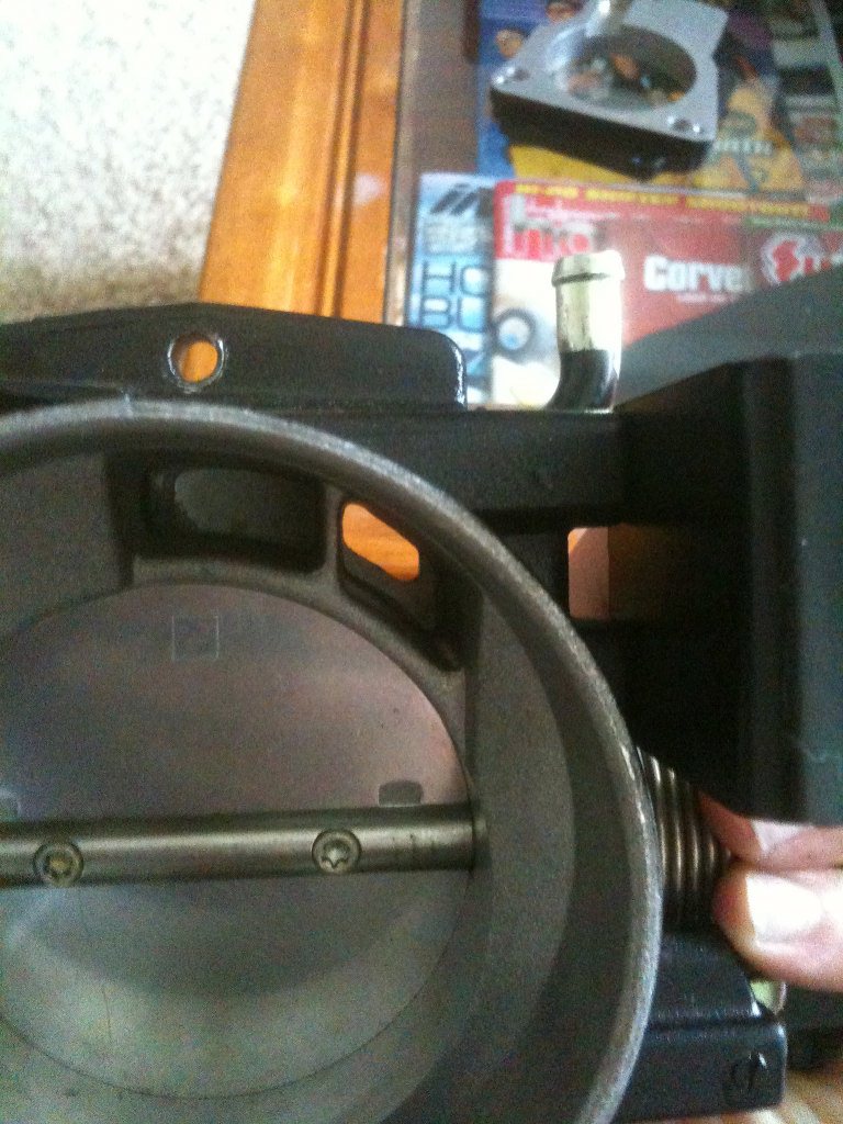 here are some pics of my tb. his is also the same one i have, the N* tb. the port leads to after the blade, but that passage has an opening that goes to before the blade. im assuming this is the correct spot to hook up the PCV hose.