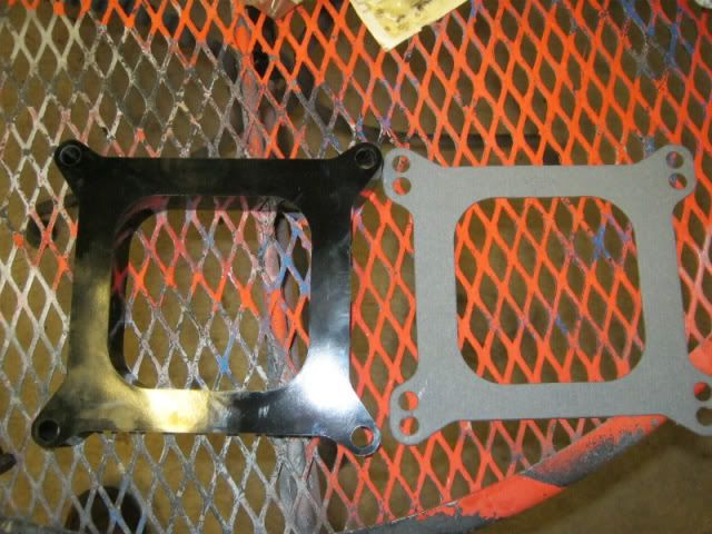 Well I have 2 different answers - which one is correct???? I really do not know but I will tell you what I think. The Holley base plate has ports in it running between the primaries and the secondaries - look like to me they are vacuum ports for PVC, vac advance, etc. One guy tells me it does not matter if they are wide open and another tells me that if it did not matter, why would they be proted to the primaries and the secodnaries. I beleive they are ported to the bores so that if it is sealed to a 4 hole plate or manifold, you still get vacuum on the various ports. But just maybe, the proting is such that it requires the seal to create the correct vacuum in the ports? So, for me, I went and picked up a 4 hole spacer from Moroso and will use a 4 hole gasket matched to my baseplate and mount the carb as designed - to a four hole base - either manifold or plate. Here's some pics:
