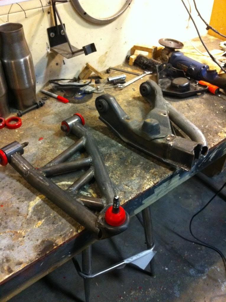 First, thanks for the help guys. I am in the process of taking off the front suspension to cut and lengthen the a-arms 2 1/4" per side. I thought while I was in there that I would redo all the suspension bushings AND add power steering.