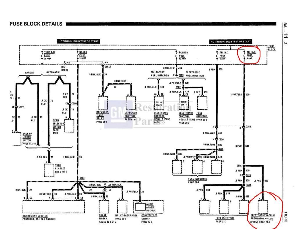 It seems that this is becoming a popular issue....my 88GT blew a TBI fuse on the way home from work...tg i found that it was merely a fuse...replaced the fuse, all was well again...until this morning of course. Fuse #2 blew. Pulled off the side of the road...and all i had was a 10A...so at least i could get to work...but im gonna have to get some fuses at lunch today.