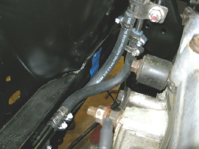 BTW, the fuel lines on mine were covered along the trunk wall by the heat shield - and yes I still hate them running on top of the engine and adding to the clutter. But if a person was to rework them so that they ran off the engine to the left and down along the transmission that would be the best.