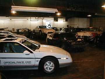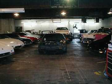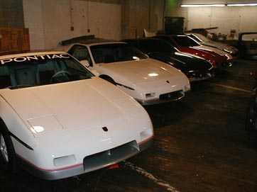 Pic #4 You're now standing in the far left corner. Directly behind you is a room with my other 88 GT twin. This room used to be the new car showroom. It has a checkered floor, and a huge showroom window that faces the street. This room also houses the majority of the Fiero Warehouse's inventory.