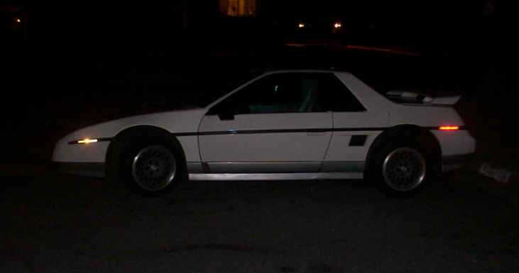 And not to worry, people. This is the car that I spun out and slammed rearend first into a concret barrier at 60mph, virtually destroying the entire rearend. Nothing salvagable was ruined during this little stunt (I purposely avoided driving up on the front end so as not to damage or destroy any of those parts). As I have already removed the parts I need from it to use on my 85 GT, I am giving the car to another local Fiero enthusiast who has the room to store it until he can remove all of the remaining usuable front end and interior parts. And believe it or not, the engine still runs (well, that is if you replaced the fuel lines I swiped off of it ) and the automatic transmission appears to have survived the crash as well.
