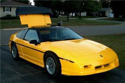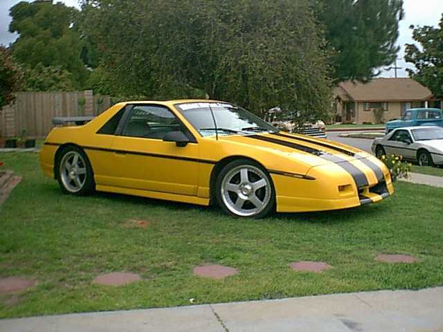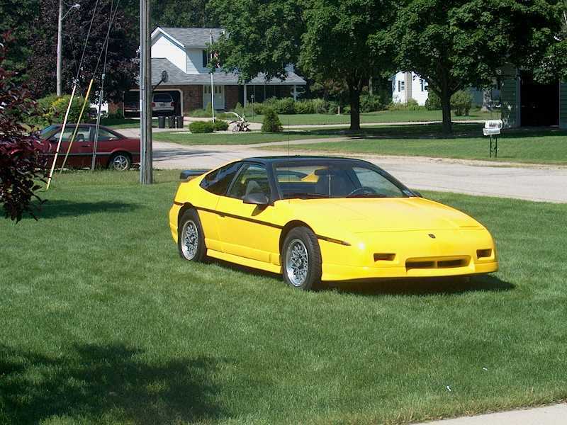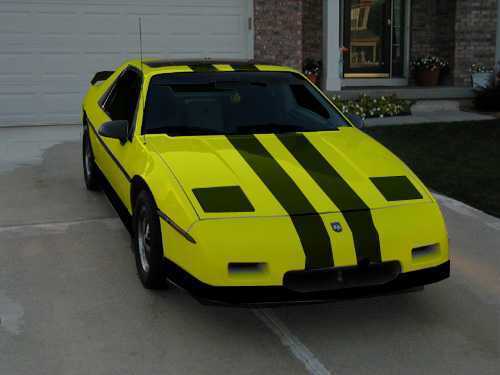 2; get rid of the stripes and headlight paint and I'd give you a 7.5. I absolutely love the look of the brightest yellow paint on a fiero. Your yellow is pretty dull, must be the shadow from the garage, eh?