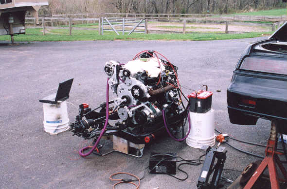 Pic of the first time I started it...out of the car! Laptop kept me updated on the sensors. Started on the second try!