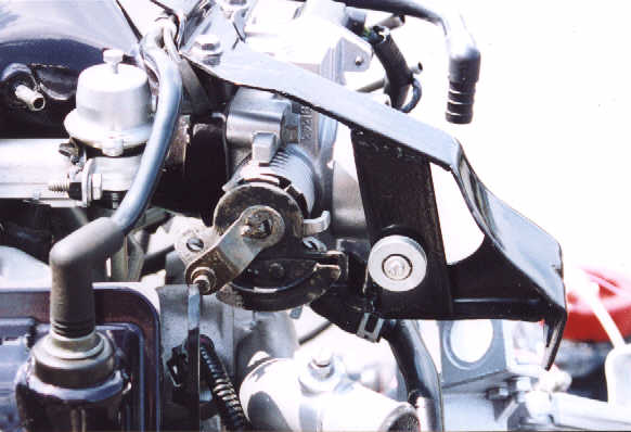 Revised throttle cable braket. Added a roller bearing "pulley" to allow for 100% throttle. Had to flip the linkage around.
