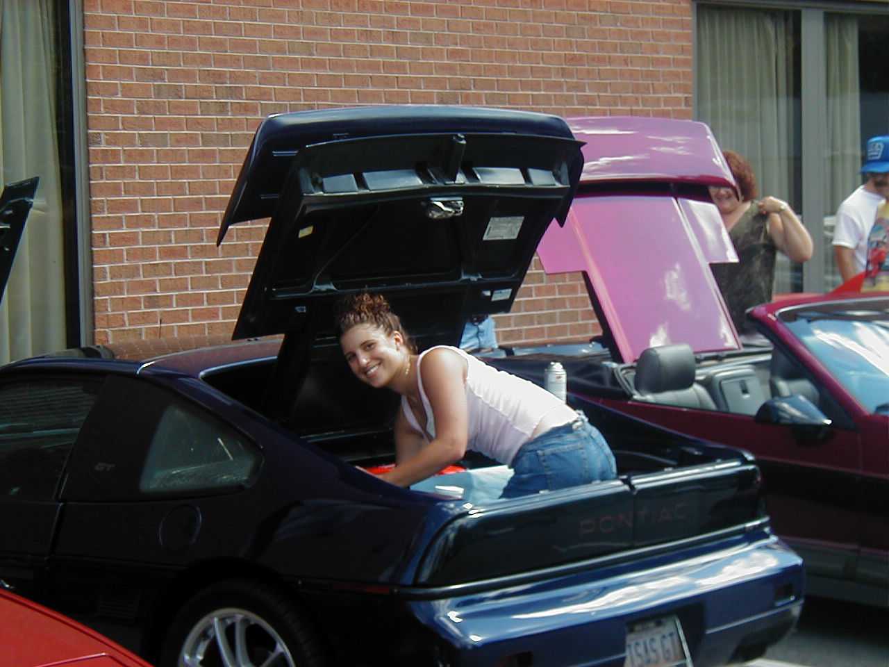 Looks like the infamous Fiero Lisa. Now, next time, remember that's supposed to be done before the show! (Not that any casual observer wouldn't want to see it )