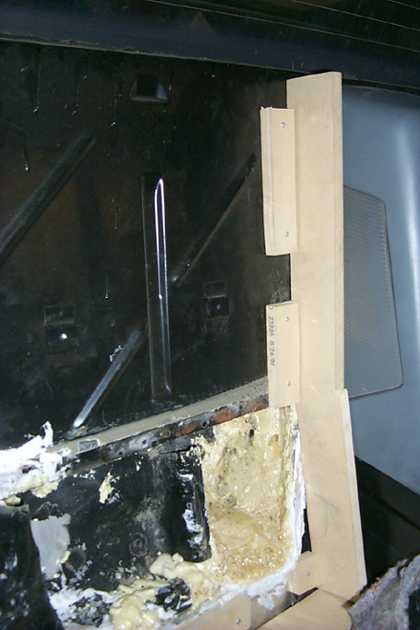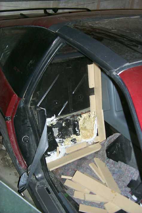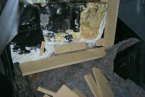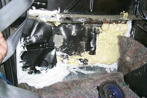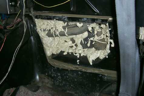 THIS IS WHERE IT STARTS TO GET BAD, THATS EXPANDING FOAM, I NEED TO CUT SOME OF IT AWAY, AS YOU CAN SEE I MADE SURE THAT IT SEALED. THIS IS THE DRIVERS SIDE.