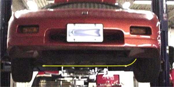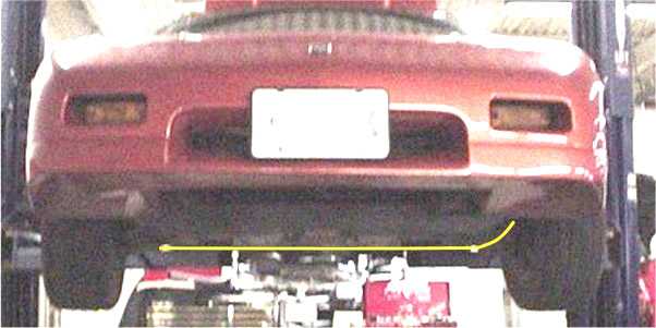 Its hard to see in the picture so I sort of outlined it. It is slightly longer than the radiator and screws into the bottem of the rad support. I also have a second deflector mounted at the frt of the engine cradle forcing air up through the engine compartment.