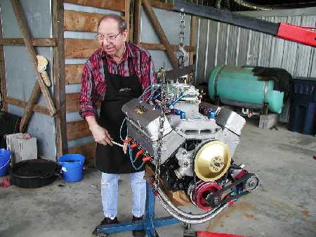 system, oil system, and ignition system to run. After lots of great pictures and movies in his shop, I asked if he would sign my book and allow me to get a picture of the three of us. He jokingly said that he would "break the camera". As it turned out, he was right. As I was preparing for the shot, I set the camera on a stool and when I went to pick it up, it