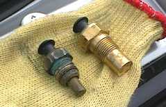 Lastly, here is a shot of the stock fan switch after it came out (left) compared to the new switch (right) before it went it.