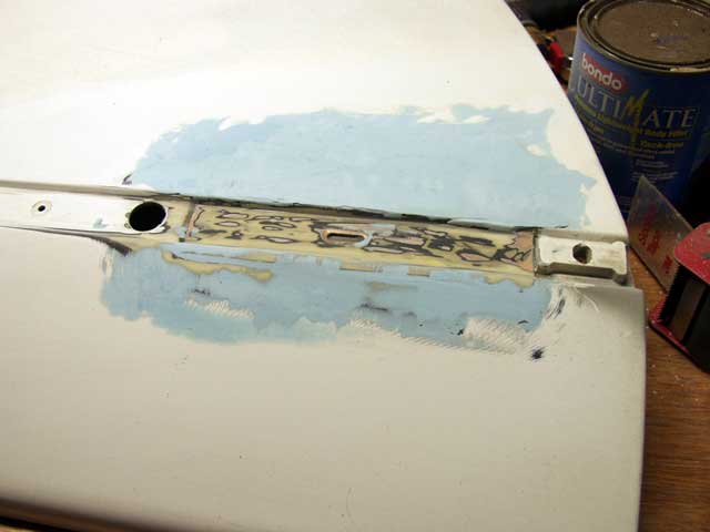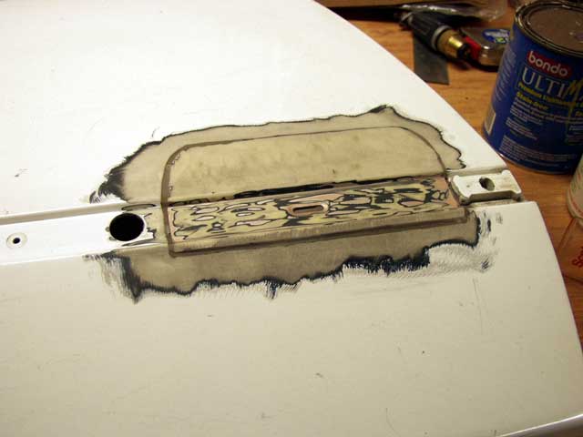 MinnGreenGT - To be honest I feel that the area where the door handles were is not that susceptible to flex. I did a sample fiberglass resin coat, about the thickness that I have on there now, on the spare panel and I'll tell you what - it bonds pretty damn good. I figure with the cloth it will be sufficient. Plus I already had the fiberglass and filler from another project.