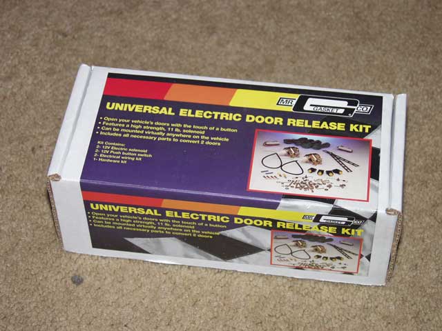 Madcurl - When will it be done you ask? Completely? Hell, probably never! I hope to have the car fully painted and done for Wheatstock at the latest, but I'm trying my best to get most of it done before Daytona. I don't want to sound pessimistic but considering my work schedule, that might be too tall an order. I'm going to use the Mr. Gasket electric door release kit that I bought over a year ago! I'll have two hidden buttons as well as have it wired to my 6 channel (or is it 8, it's been so long since I've seen it) Alpine alarm system. I still need to shop around for some stainless poppers but that the least of my worries. Here's the kit that I'm using. I don't know what black bumper material your referring to that Archie used. The last I heard, the door handle area was fiberglassed in the stinger.