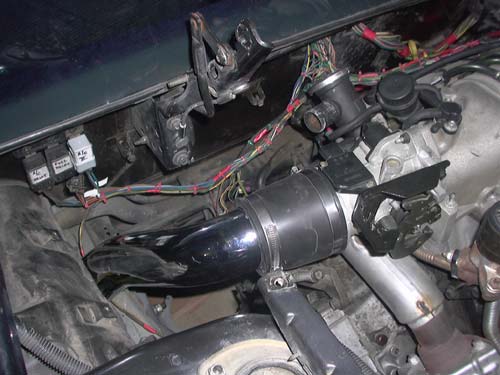 As for the weather issue, I removed the water diverter box on my OEM intake. I've got a straight pipe (flex tube) that goes from the bottom of the OEM air filter canister to the fender vent (that way it's still sealed to outside air). I'm also running a Fiero Store "Holley-style" scoop. I drive the car in all manner of weather and have not had any trouble with gunk or water getting into my air intake or air cleaner, let alone the engine.