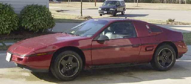 This was a base coupe when I started. So far, in addition to the fastback, I've installed a sunroof, TransAm seats, a mustang scoop, sluppy123's front hood struts, and a '97 Pontiac CD/Radio. But, I've got alot of work left to do. I'm debating on what type of spoiler to put on...back to the original, or something else. Like the looks of the Fiero warehouse "Whale Tail", but not sure how it will work with the "mustang scoop" on the deck lid. Would also like to put on a set of quarter panel sccops, lowering springs, re-install the ground effects, sunbird hood vents. Then comes finishing the inside. Have a set of power doors to install and want to add cruise. Finally comes repainting.