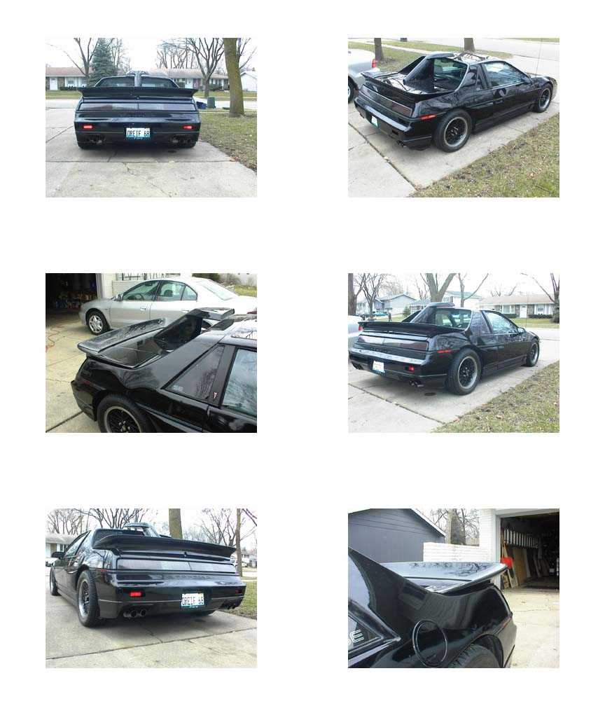 The three piece you show there (FieroMonkey) looks like the race wing with the small tips and not all self contained to the trunk lid. If you want the original IMSA racecar look, FieroMonkeys car is the one to copy. Here is the race wing. I can take measurements if someone is interested.