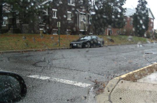 Before I "got into" Fieros this one kid(his sister had it for a while he has it now) that lived LITERALLY right across from the highschool and the only reason it got my attention back then before I got into Fieros was cause it was a Pontiac. Anywho......like I said his sister usta drive it all the time, but she went to college and he got it(hes a sophomore) well its a VERY NICE Black (86???) SE aero notchback and is just sharp and sounded great....Heres a picture of it I snapped off one day a while back
