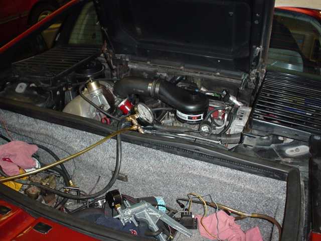 We drove a Turbo 4.9 MPI Fiero with just over 5psi boost on Saturday. The engine pulled great right from a stop like always. The biggest area of difference I felt was the latteral accelleration after especially higher rpm. Anyone who has driven a 4.9 Fiero has noticed that the engine has a huge jump from a stop and as the rpm goes up above high 3000 rpm its pull starts dropping. Well, not any more on Her86GT's Fiero. It pulls hard all the way until it shifts and when it shifts, it does it all over again smooth as can be.